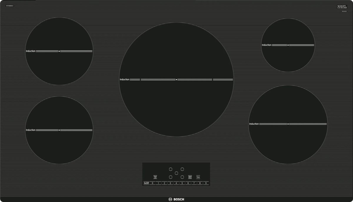 Bosch 500 Series 36" Black Induction Cooktop with 5 burners, SpeedBoost® and 17 power levels for each cooking zoneRead More