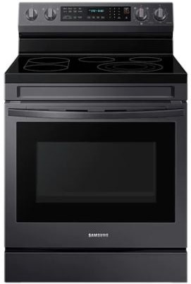 This Samsung 30" fingerprint resistant black stainless steel freestanding electric Range is the must-have for your cooking needs. Create more or large dishes with a huge 6.3 cu. ft. capacity oven. You can prepare multiple dishes at once, or easily cook large items. Cook dishes quickly and evenly using the powerful heat and precise control of the 3.0kW Triple Ring Flexible Cooktop. It can rapidly go to a high heat for searing meat, and boiling water in a flash or turn it down to a true simmer.
